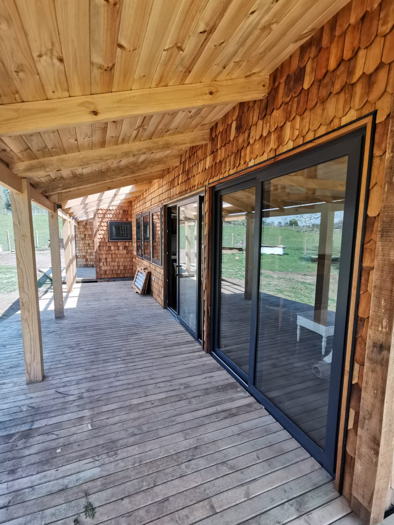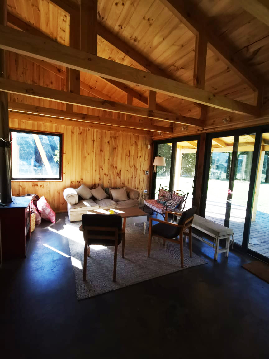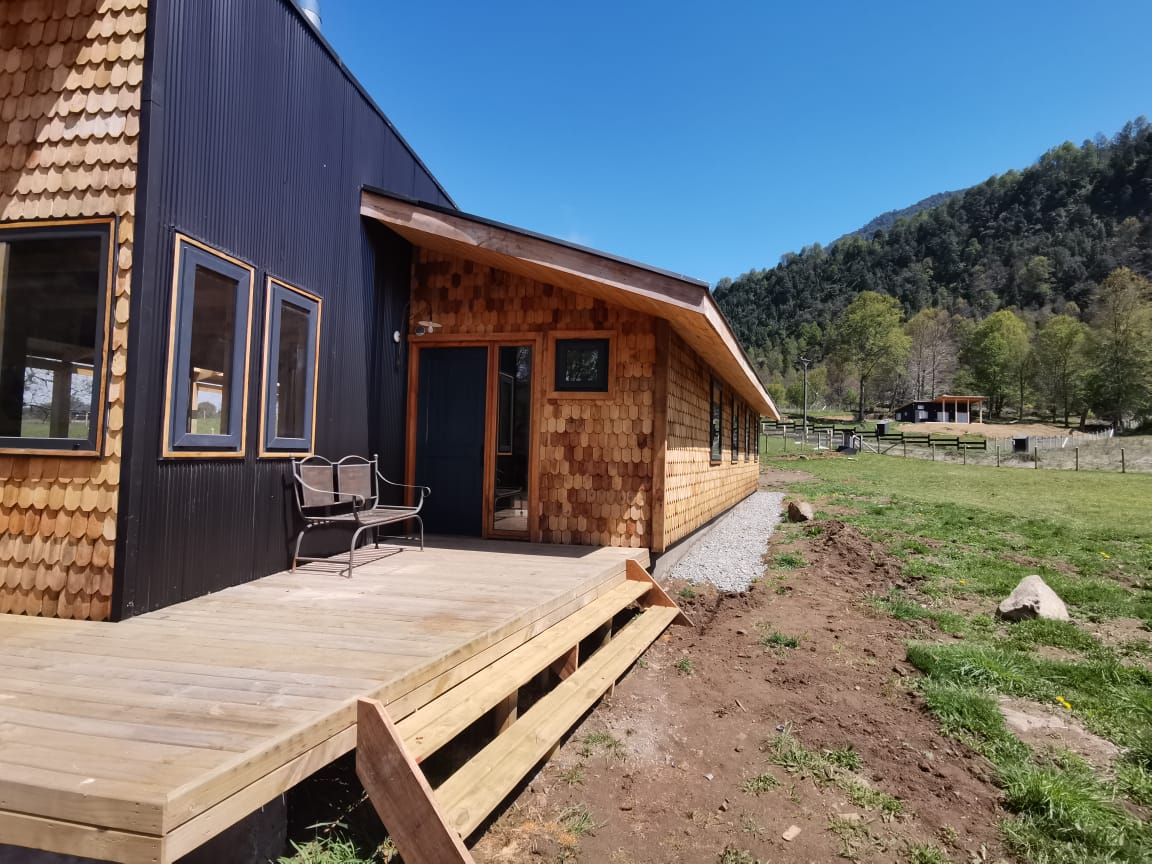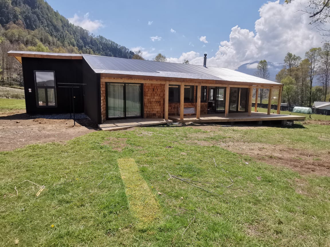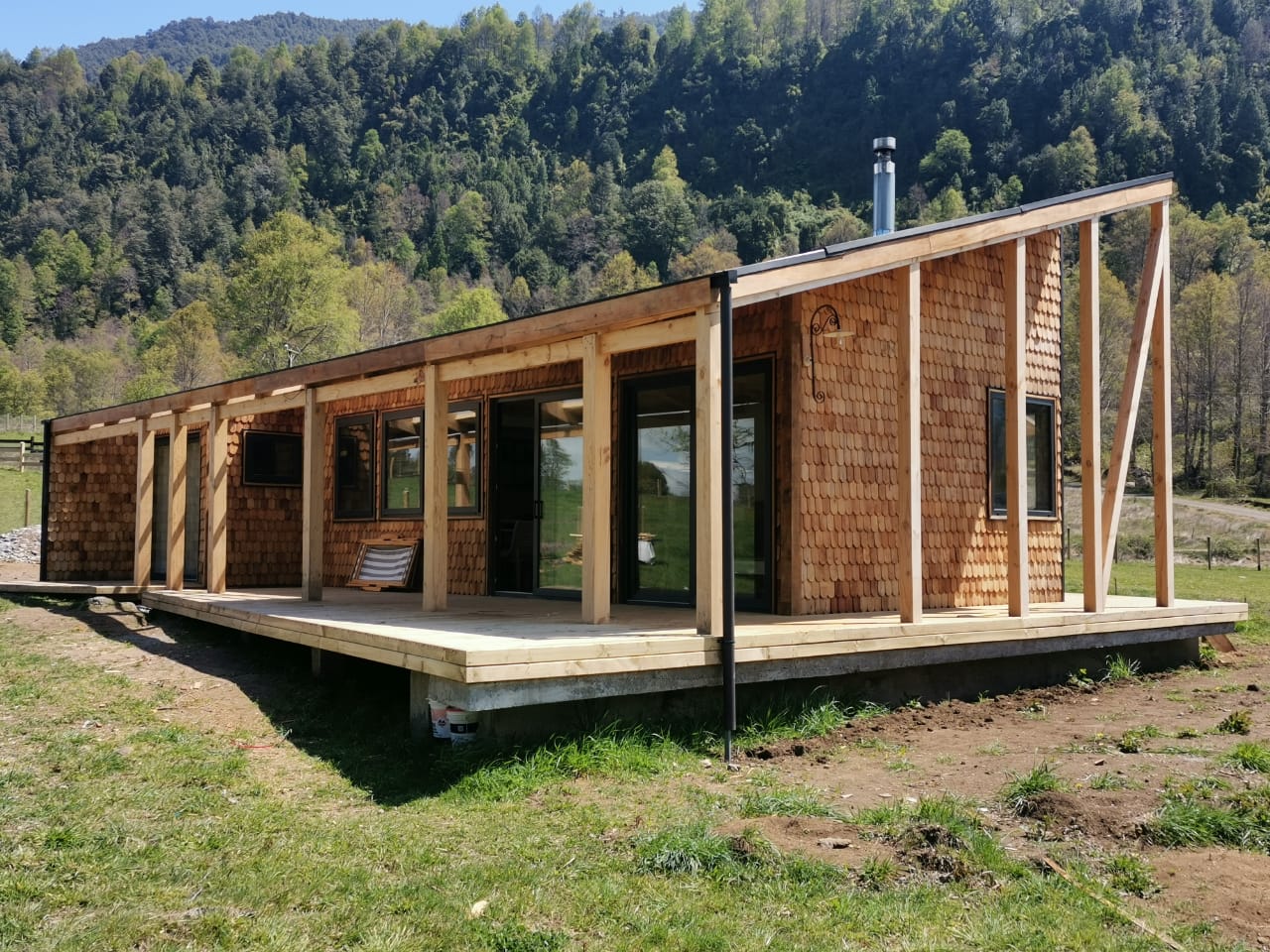 Obra en ejecución de 123m2 más 50m2 de terraza construía sobre fundación corrida, aislapol de alta densidad en piso, estructura de pino, aislación de lana de oveja (Bioaislan) en muros y techos, perímetro encamisado con cierre de tejuela de roble y zinc micro ondulado. Ventanas de pvc con termopanel, terraza de pino impregnado con techo de policarbonato compacto transparente. Fin de la obra para 07/23